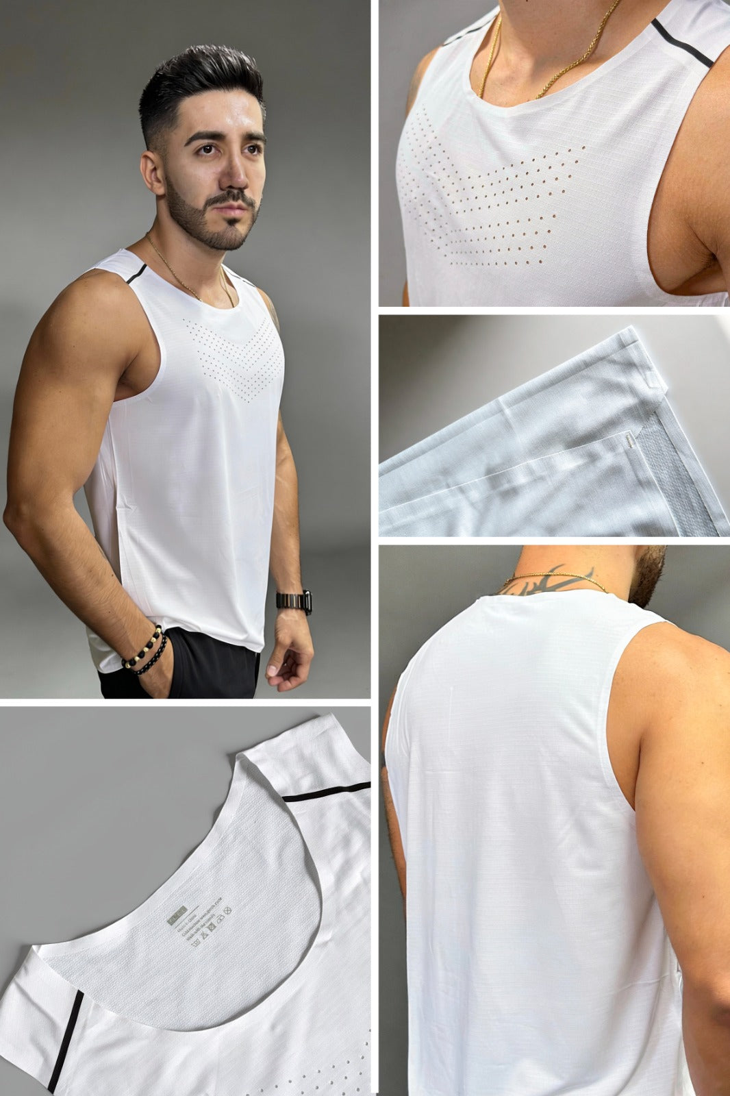 Camiseta deportiva sin mangas creada para maximizar tu rendimiento. Su tejido ultraligero y de tacto suave mantiene el cuerpo fresco incluso en los entrenamientos más exigentes. El diseño sin mangas ofrece total libertad de movimiento, mientras que su textura moderna y cómoda se adapta al cuerpo sin limitarte. Ideal para gimnasio, running o actividades de alto impacto. Más comodidad, más estilo, más rendimiento.